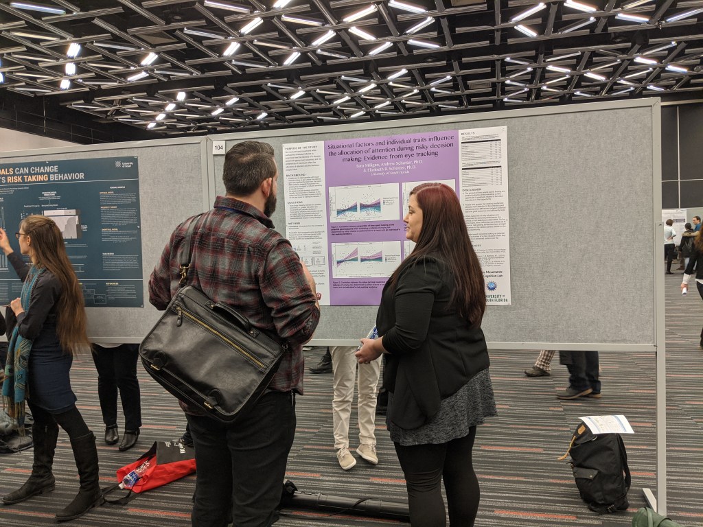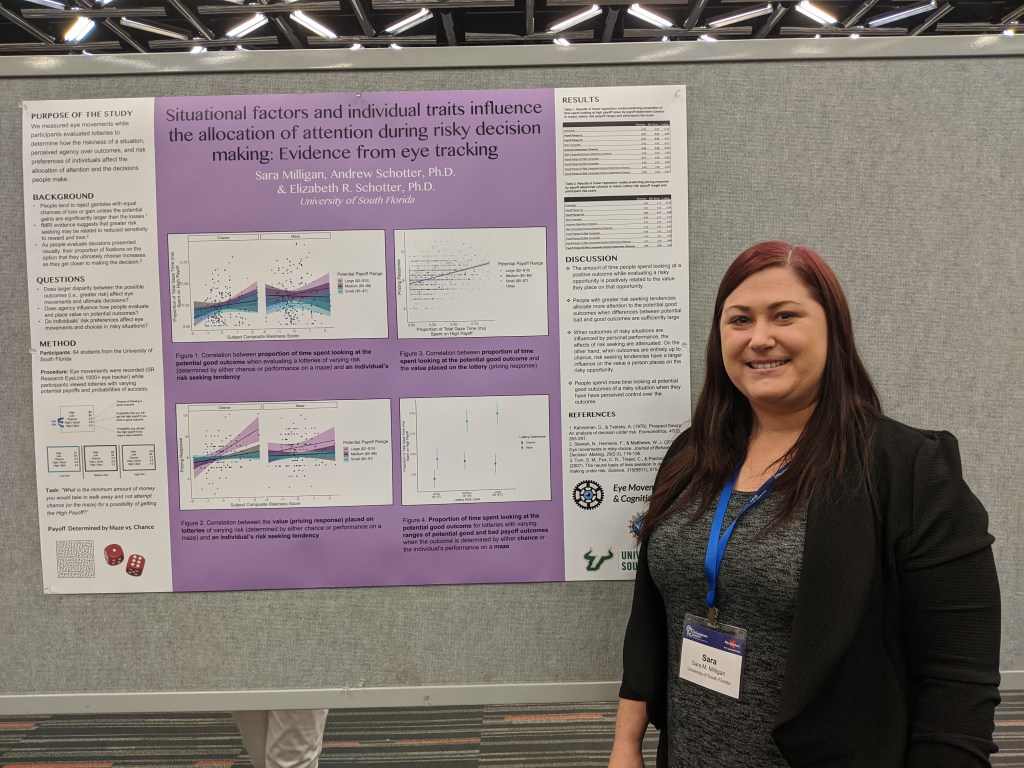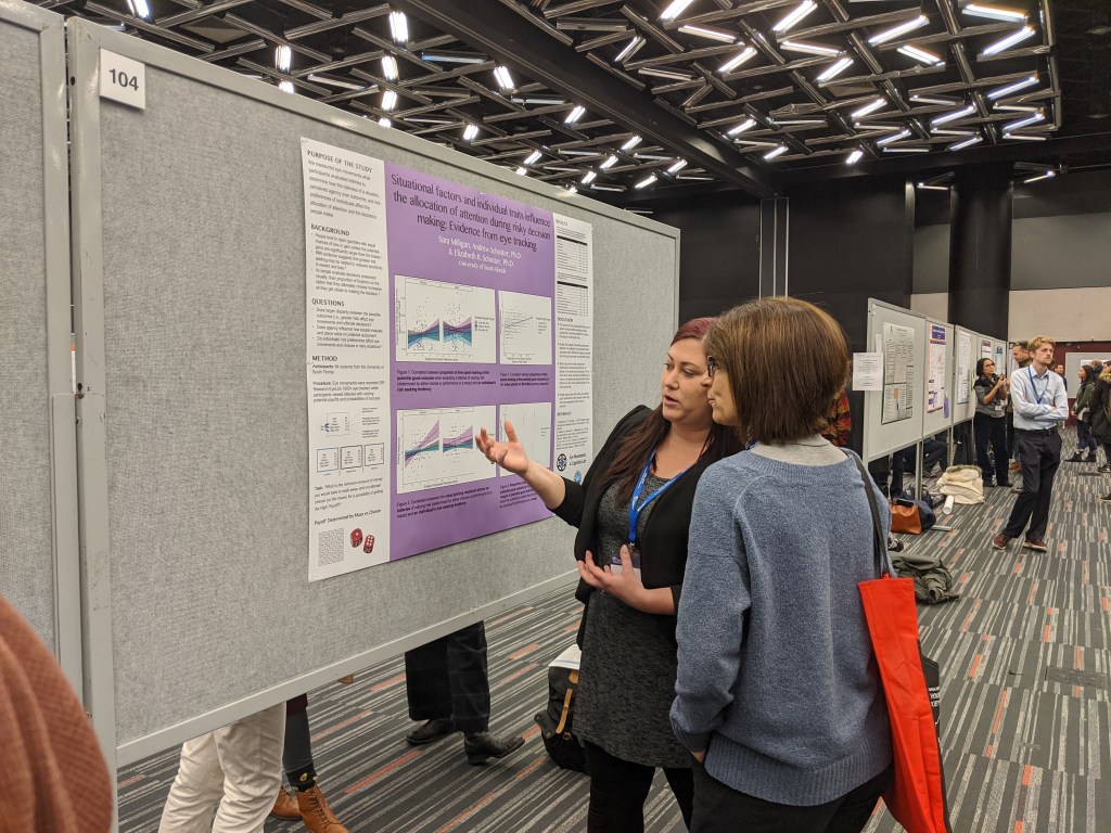 Sara presented a poster on her project investigating individual differences in decision making and allocation of attention at the 60th Annual Meeting of the Psychonomics Society in Montreal, Canada.